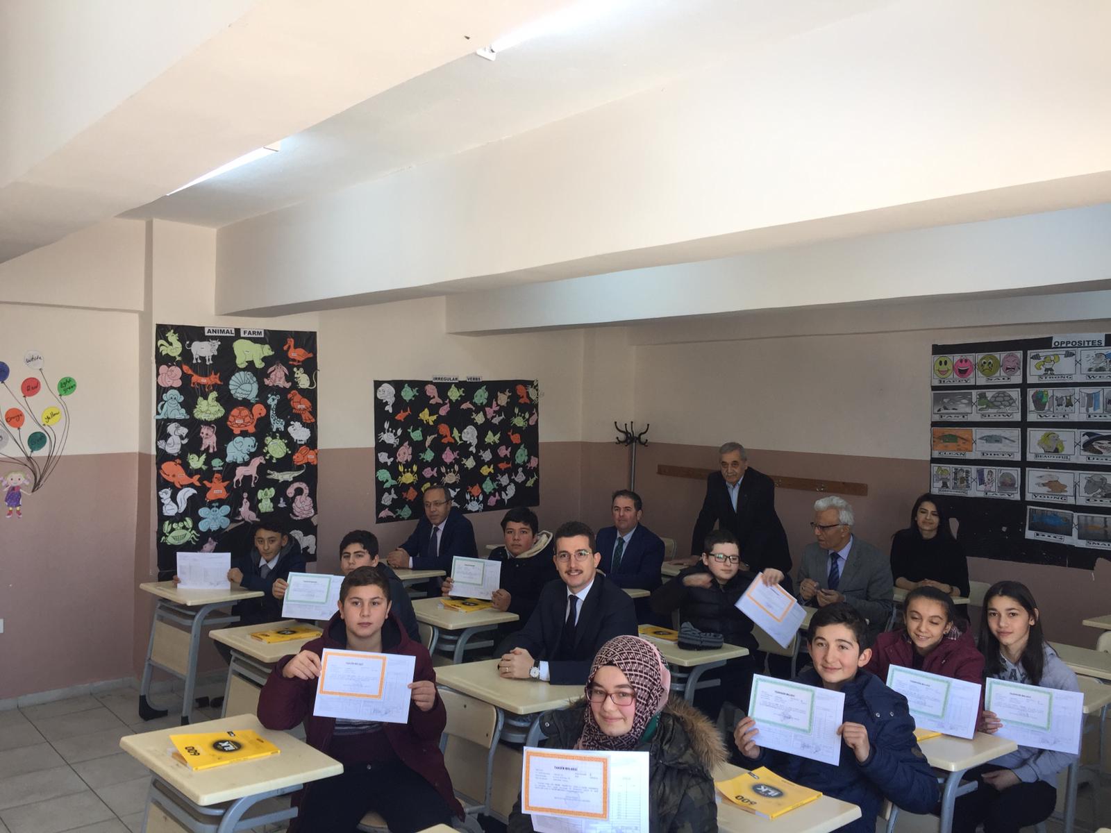 2018-2019 Eğitim ve Öğretim yılının 1. Dönemi sona ererken tüm yurtta olduğu gibi Dörtdivan’da da karne heyecanı yaşandı. Dörtdivan’da karne heyecanının yaşandığı okullardan biri de Merkez Şehit Orhan Yalçın Ortaokulu’ydu. Öğrencilerin karne heyecanına ortak olan Belediye Başkanımız Hasan UZUNOĞLU ve İlçe Kaymakamımız Yusuf KAPTANOĞLU sınıflarda düzenlenen törende öğrencilere karnelerini dağıttı ve öğrencileri başarılarından dolayı tebrik ettiler. Belediyemiz tarafından başarılı öğrencilere hediye takdim edildi. İlçe Milli Eğitim Müdürü Erdal Bal, okul idarecileri ve velilerin de bulunduğu törende karnelerini alan öğrenciler yarıyıl tatiline girmenin mutluluğunu yaşadılar.