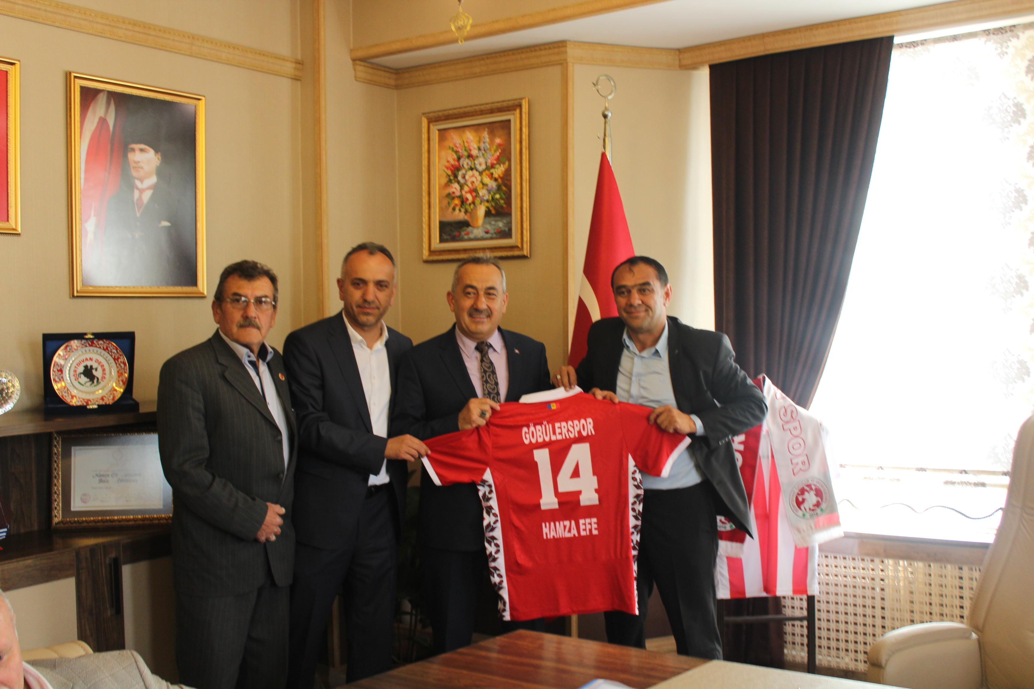 Göbüler Köyü Muhtarı Şaban Yeler ve köy takımının yöneticileri Belediye Başkanımız Hamza Efe'yi makamında ziyaret ederek 'HAMZA EFE' baskılı forma ve atkı hediye ettiler. Başkanımız kendilerine bu hediye ve ziyaretlerinden dolayı çok teşekkür ederek futbol turnuvasında başarılar diledi.