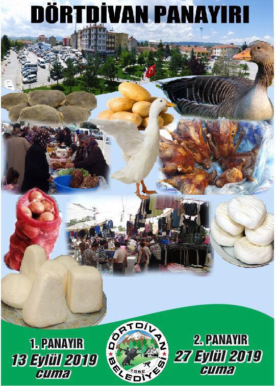 Geleneksel Dörtdivan Hayvan ve Emtia Panayırının ikincisi 27 Eylül 2019 Cuma günü gerçekleştirilecektir. Tüm Vatandaşlarımız Davetlidir.