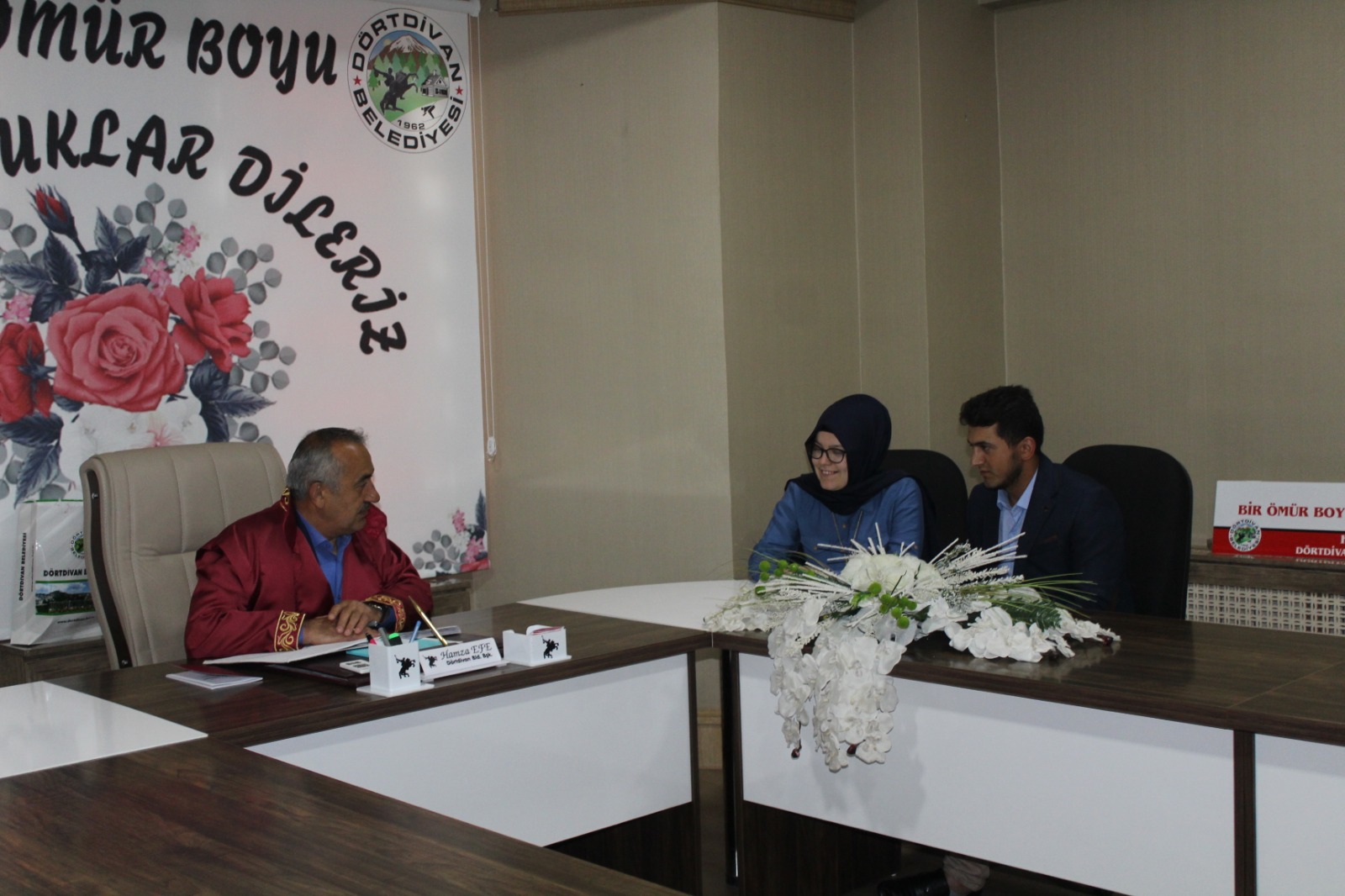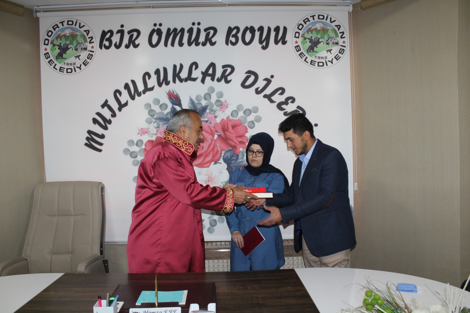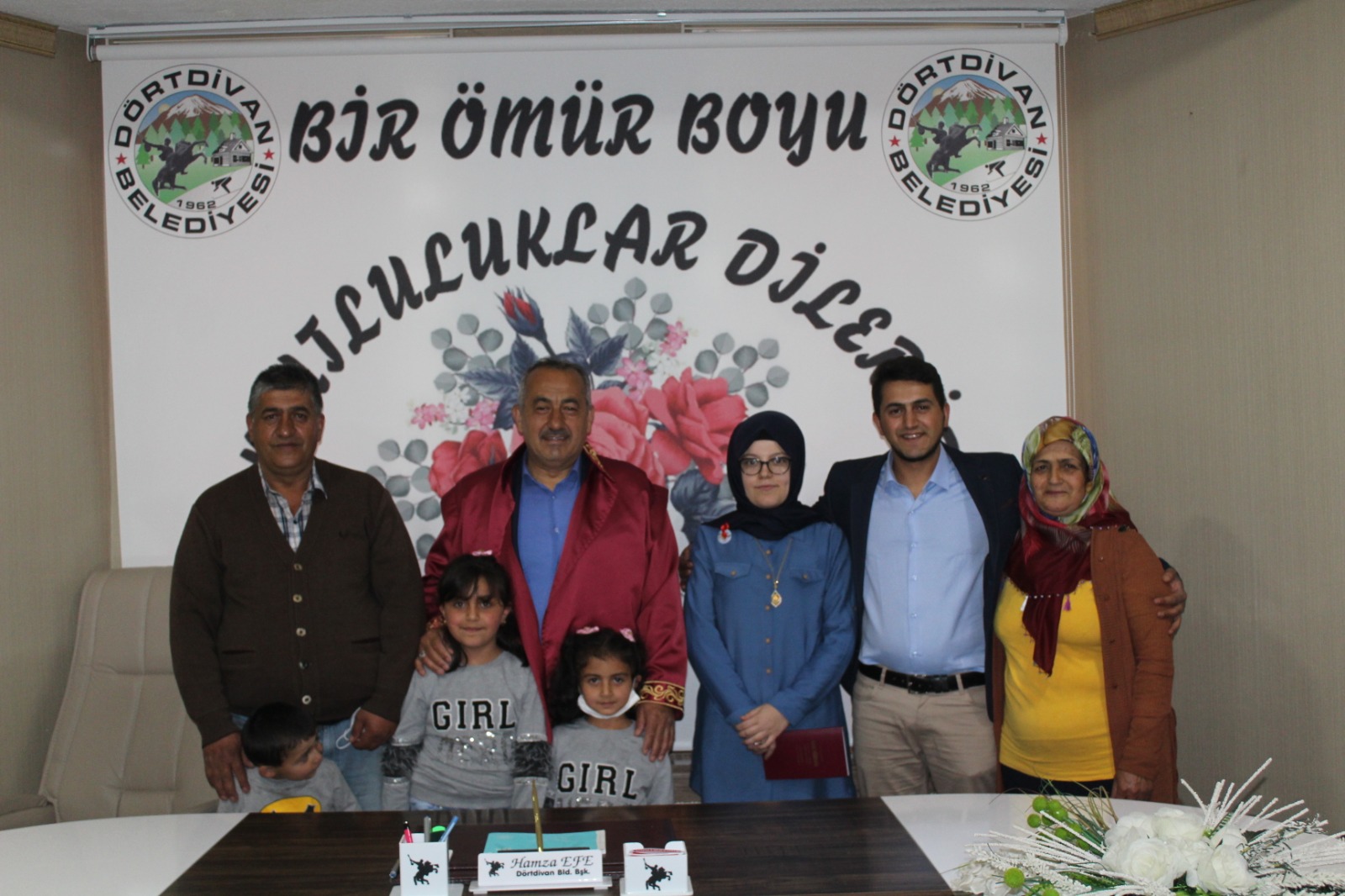 Belediye Başkanımız Hamza EFE, Şule Köse ve Belediyemiz personellerinden Taner Biçici çiftinin nikahını kıydı. Belediyemizde gerçekleşen nikah merasimine çiftimizin yakınları da katıldı. Belediye Başkanımız tarafından Şule-Taner Biçici çiftine evlilik cüzdanları ve belediyemizin başlattığı ilk altını biz takacağız, Kuran-ı Kerim ve Türk Bayrağı hediyeleri takdim edilerek nikah merasimi sona erdi. Yeni çifte bir ömür mutluluklar dileriz. Tüm aile ve akrabalarına hayırlı ve mübarek olsun.