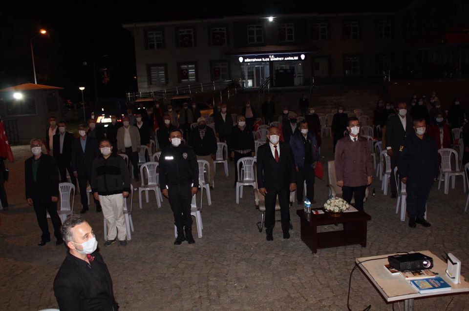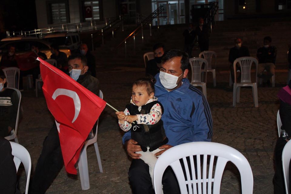 15 Temmuz Demokrasi ve Milli Birlik Günü münasebeti ile yapılan program saat 21.00’da Başkanımız Hamza Efe, Kaymakamımız Yusuf Kaptanoğlu , daire amileri ve vatandaşlarımızın sosyal mesafe kurallarına ve maske kullanımına özen gösterilerek Kaymakamlık Binası önünde gerçekleştirildi. Sayın Cumhurbaşkanımız Recep Tayyip Erdoğan’ın günün anlam ve önemini belirten konuşması dinlendikten sonra 15 Temmuz Belgeseli izlendi ve bütün şehitlerimize ithafen Saygı duruşu ve İstiklal Marşı ile program başladı.