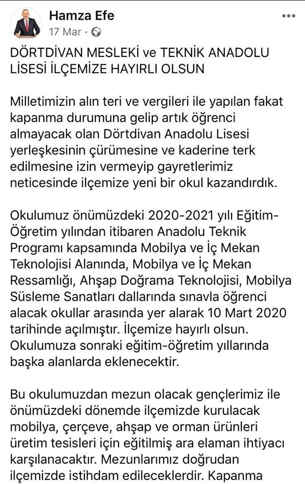 LGS sonuçları açıklandı ve tercih haftası başlamıştır. Bu noktada sınav ile öğrenci alacak okullar arasında ilçemizde yeni açılan Dörtdivan Mesleki ve Teknik Anadolu Lisesi de vardır. Okulumuza yatılı yada gündüzlü sınırlı sayıda 68 öğrenci alınacaktır.