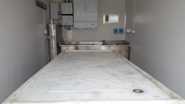 2015 ISUZU Marka Mobil Cenaze yıkama aracında elektrikli ve tüplü şofben, jeneratör, Su Tankı, Elektriğe bağlanabilir ara kablo sistemi ve Aydınlatması bulunmaktadır. Araç içerisinde bulunan cenaze yıkama masası ve lavabosu sayesinde cenazeler rahatlıkla yıkanabilecek.