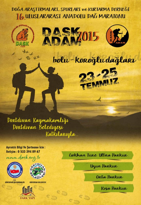 Bolu Dörtdivan Dağ Maratonu olarak adlandırılan 16. Anadolu Dağ Maratonu 23 - 25 Temmuz 2015 de Dörtdivan Köroğlu Dağlarında düzenlenecek. Dörtdivan da üç gün sürecek yarışmalarda farklı zorluk derecelerindeki üç parkurda, ikişer kişilik takımlar yürüyecek.