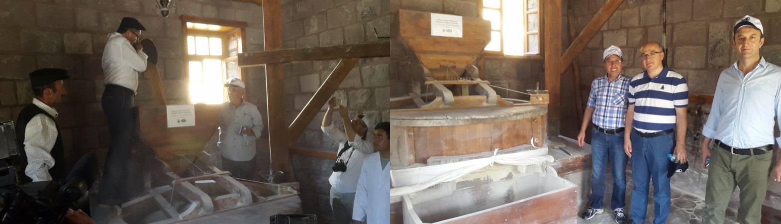 Patozu kendi kuran Başkan Tiryaki, bu işlemin ardından biçilen buğdayları at ve eşeklere yükleyerek değirmene götürdü. Altın Köy’de inşa edilen su değirmeninde buğday öğüten Başkan Tiryaki, buradan elde edilen unun hakiki kepekli buğday unu olduğunu belirtti.