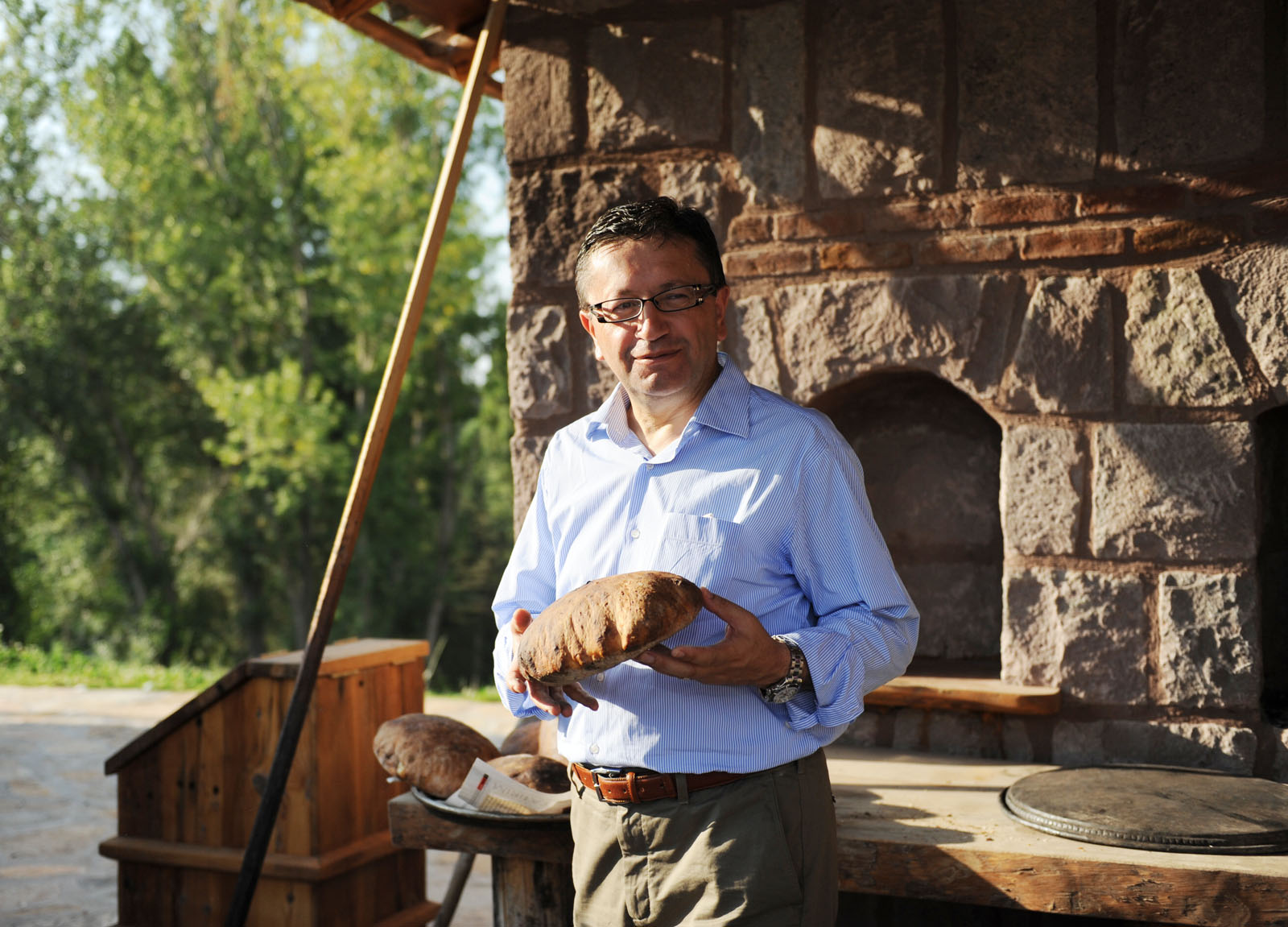 Değirmenden çıkan unun ardından köy fırınına giderek, köylü kadınların yaptığı tam buğday ekmeğe dönüştüğünü gösterdi.