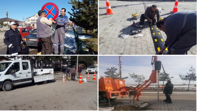 Dörtdivan İlçe Trafik Komisyonu Başkanlığı ile Belediye Ekiplerince ilçe genelinde bulunan cadde ve sokaklarda yapılan kontrollerde trafik akışı ve güvenliğinin sağlanması açısından trafik işaret levhalarında görülen eksikler tespit edilerek işaretlendi. İşaretleme çalışmalarının ardından uyarı levhalarının montajına Belediye Ekiplerimiz tarafından Köroğlu Caddesi, Veysel Tiryaki Caddesi, Gerede Caddesi, Altundağ Caddesi ve trafik akışının yaşandığı cadde ve sokaklara tek yön, okul bölgesi, sağa ve sola dönülmez ile park yasağı uyarı levhalarının montajı yapıldı.