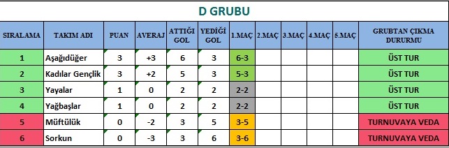 TURNUVADA 1.HAFTA MAÇLARI TAMAMLANDI