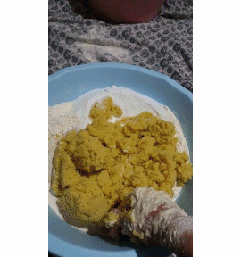 Ertesi gün 25 kg una elde edilen ekşi maya eklenerek, bir miktar tuz ve bir miktar suyla hamur kıvamına gelene kadar yoğrulur. Hamurun üzeri kapatılarak 1 saat mayalanması için beklenir.(oda sıcaklığında) Köy fırını yakılarak 1 saat ısıtılır.