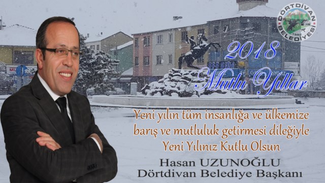 Dörtdivan Belediye Başkanı HasanUzunoğlu, yeni yıl nedeniyle bir mesaj yayımlayarak, “Sevinci ve hüznü birlikte yaşadığımız 2017’yi geride bırakırken yeni yılın hepimize sağlık, huzur, mutluluk getirmesini temenni ediyorum” ifadelerini kullandı.