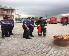 Belediyemiz itfaiye personeli tarafından İlçe Emniyet Amirliği personeline yangın söndürme eğitimi verilerek yangın tatbikatı yapıldı.