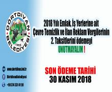 2018 YILI EMLAK VE ÇEVRE TEMİZLİK VERGİSİNDE SON GÜN 30 KASIM 2018 yılı Emlak, İş yerlerine ait Çevre Temizlik ve İlan Reklam Vergilerinin 2