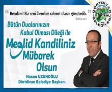 BAŞKAN UZUOĞLU’NUN, MEVLİD KANDİL MESAJI.. Belediye Başkanımız Hasan Uzunoğlu, Peygamber Efendimizin (S.A.V) Dünya’ya teşriflerinin yı