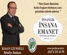BAŞKAN UZUNOĞLU’NUN KUTLU DOĞUM HAFTASI MESAJI Belediye Başkanımız Hasan Uzunoğlu, Kutlu Doğum Haftası dolayısıyla bir mesaj yayımladı. &l