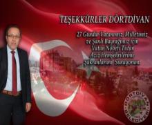 Başkan Uzunoğlu’ndan Teşekkür Mesajı Dörtdivan Belediye Başkanımız Hasan Uzunoğlu, 15 Temmuz darbe kalkışması sonrası Dörtdivan halkının g