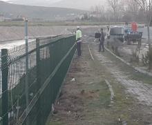 Ulusu Deresi ıslah çalışmalarının ardından dere kenarlarına tel örgü çekiliyor. DSİ Tarafından başlanan tel örgü &cced