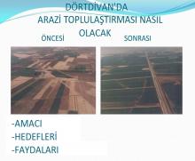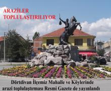 ARAZİLER TOPLULAŞTIRILIYOR Dörtdivan da araziler toplulaştırılıyor. Dörtdivan İlçemizin Mahalle ve Köylerinde toplulaştırma ile ilgili
