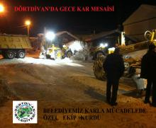 DÖRTDİVAN’DA GECE KAR MESAİSİ -Belediyemiz aşırı kar yağışı nedeniyle kapanan yolları açmak için özel ekip kurdu.